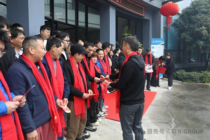 当天上午,董事长滕敏亮还亲自为到岗员工派发“开门红包”,并主持召开了“新春第一会”,明确部署2026年工作目标及重点计划。会议现场利好消息频传,当前公司订单量已远超去年同期,为新一年高质量发展奠定坚实基础。